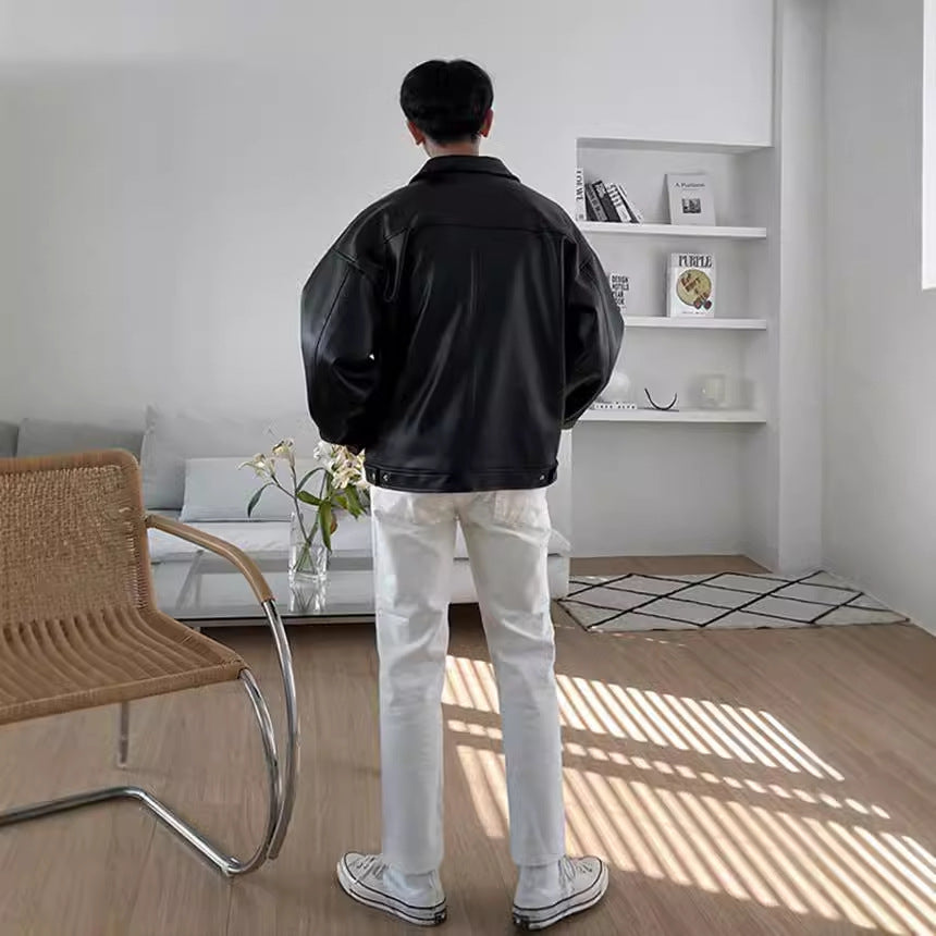 A sleek leather jacket combining the casual charm of a baseball uniform with the bold edge of motorcycle style. Designed for versatility and attitude, it’s the perfect blend of sporty and street-smart fashion.