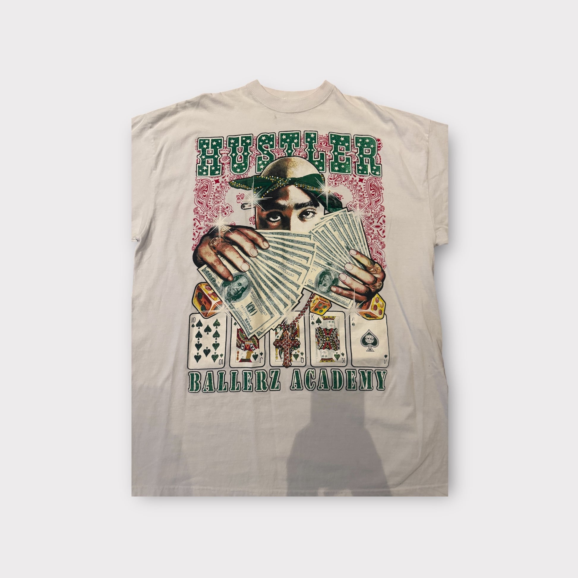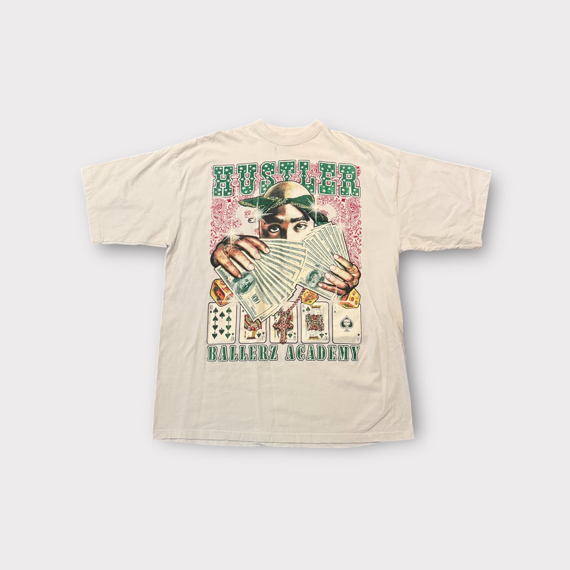 Vintage Y2K Hustler Tupac Studded Embellished Money Poker Hip Hop T-Shirt Sz 4XL